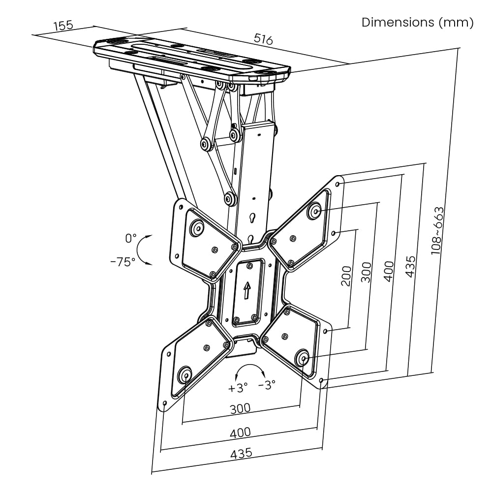 TVB-106 Smart Flip Down TV Ceiling Mount is a perfect choice to save space or for room with low ceiling. A quality motor holds TVs up to 23" ~ 55" and lowers and retracts TVs smoothly and quietly, completely controllable by remote or Tuya app (AI series). A balanced mechanism prevents any ceiling vibrations when the TV is in motion. There are convenient memory settings as well a brilliant choice for public or home TV viewing installations!