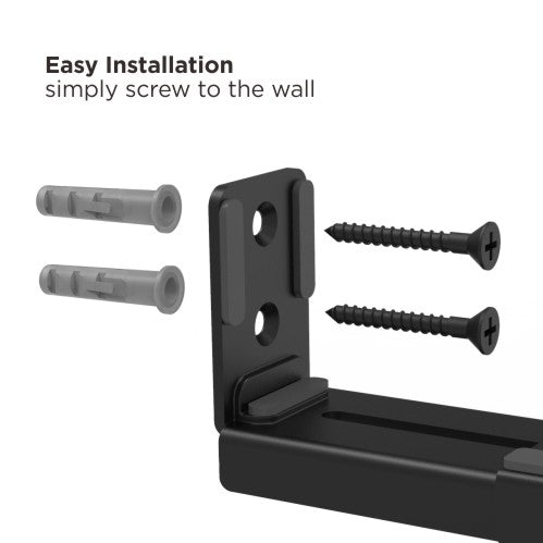The TVB-84 adjustable soundbar brackets offer the convenience to mount the soundbar to the wall beneath or above any TV – or any other wall location. Adjustable depth provides great compatibility for most any brand soundbar of 3.5”-6.1” Depth. The locking knob under each bracket ensures effortless and quick depth adjustment. Soft anti-slip EVA pads protect the soundbar from scratches while removing any vibrations from audio during use. Unobtrusive design allows the eye to remain focused on the soundbar and not on the brackets.