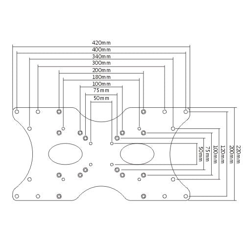 The TVB-110 adapter allows VESA50x50, 75x75 or 100 x 100-compatible mounting plates to support TVs with VESA 200 x 100, 200 x 200 or 400 x 200 hole patterns. It attaches easily to wall mounts and any mount with a certain interface.